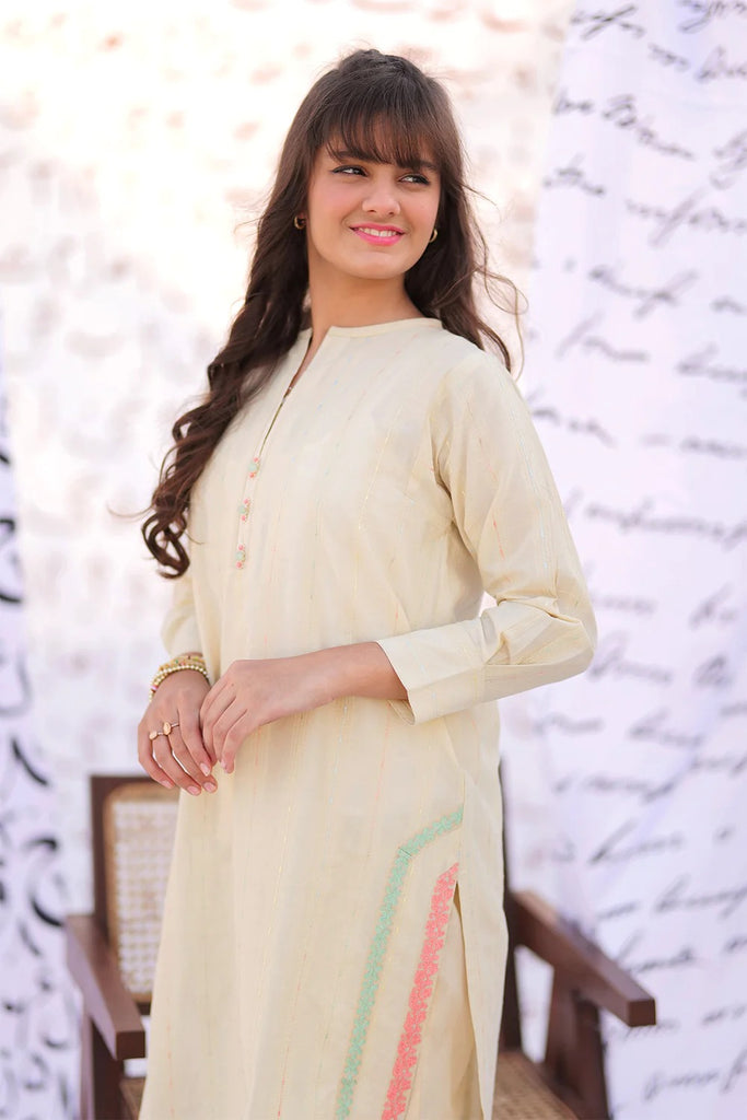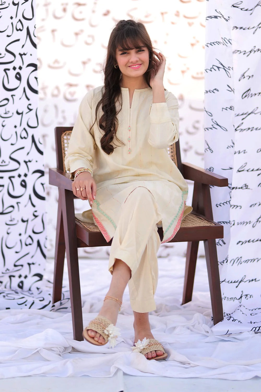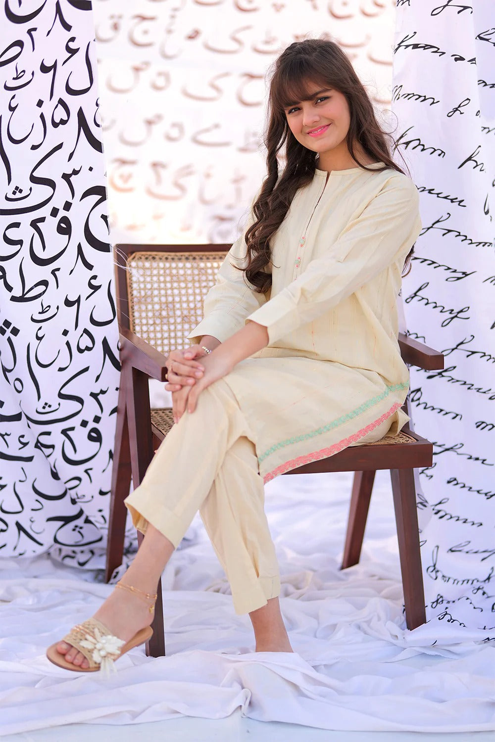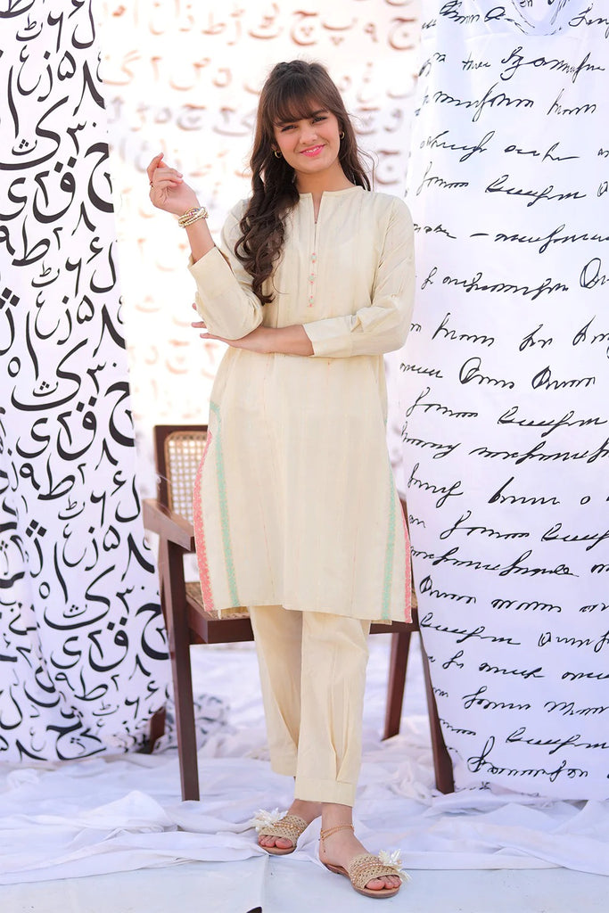 GAC-02223 | CREAM & MULTICOLOR | CASUAL 2 PIECE SUIT | COTTON YARN DYED
